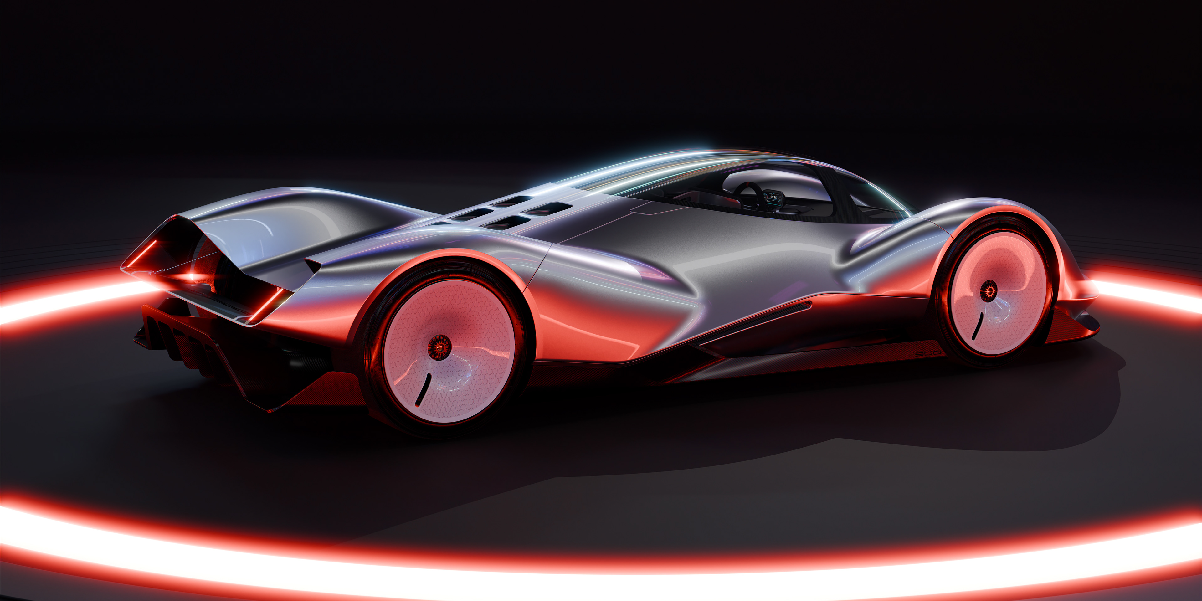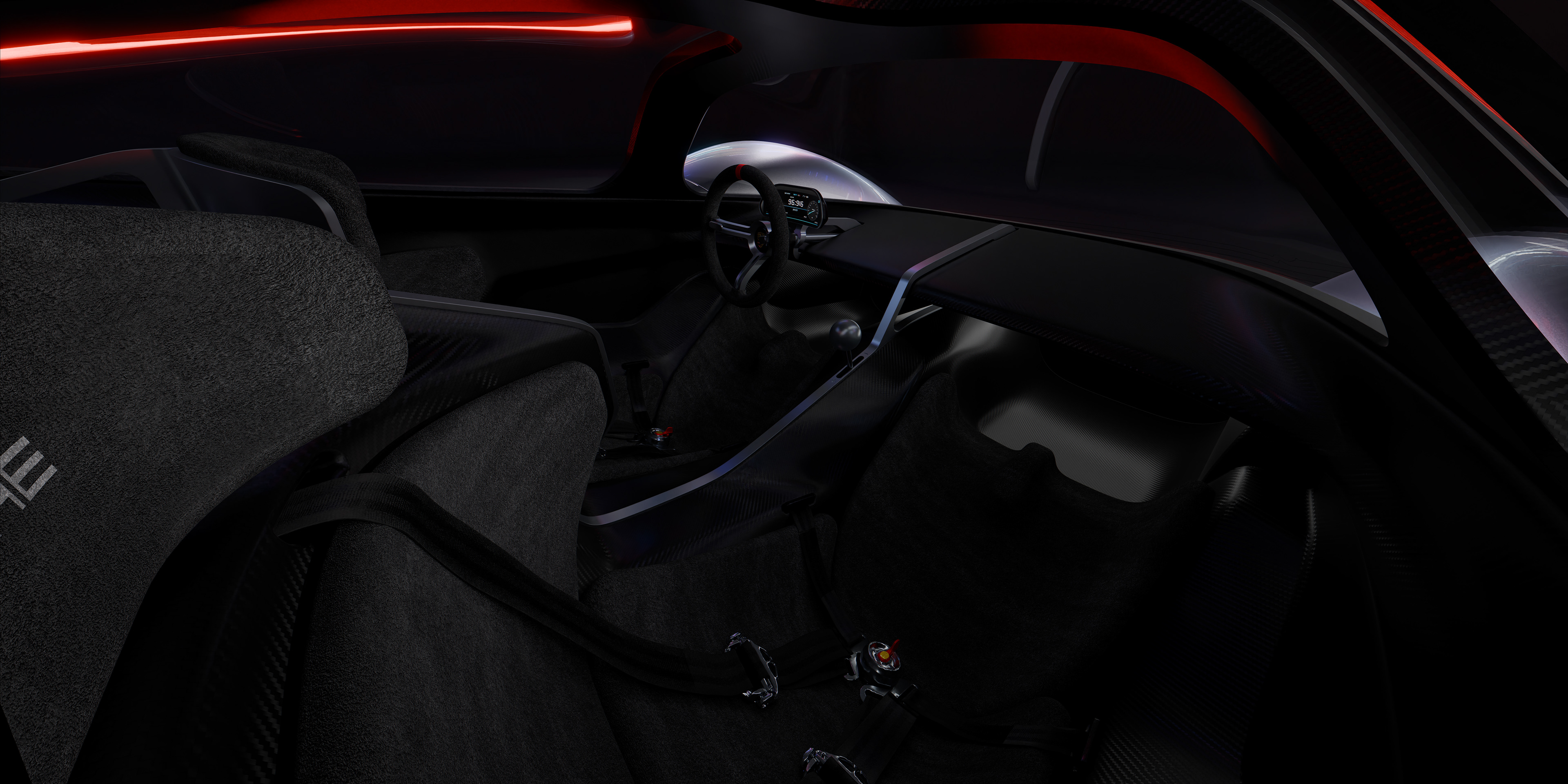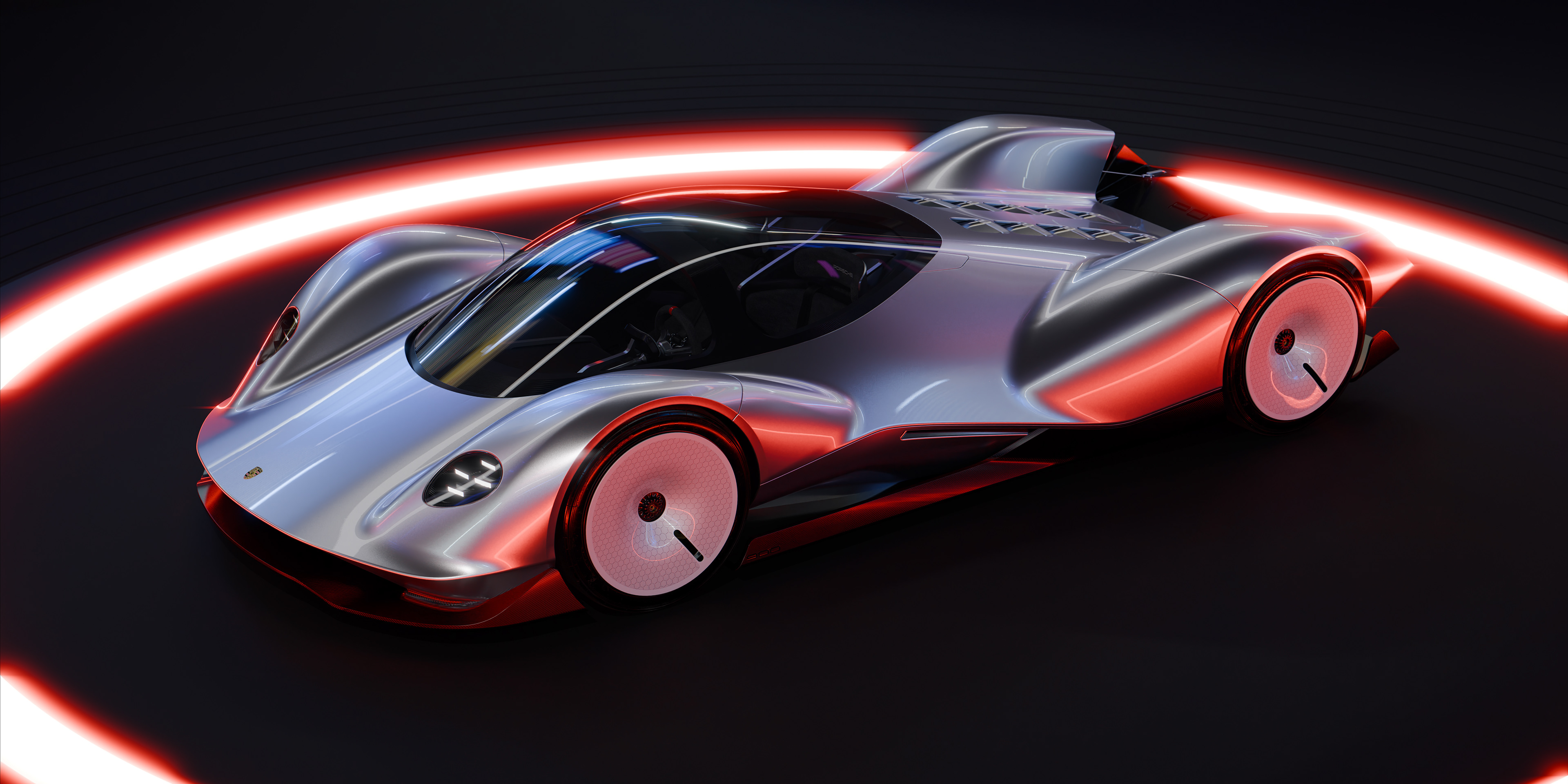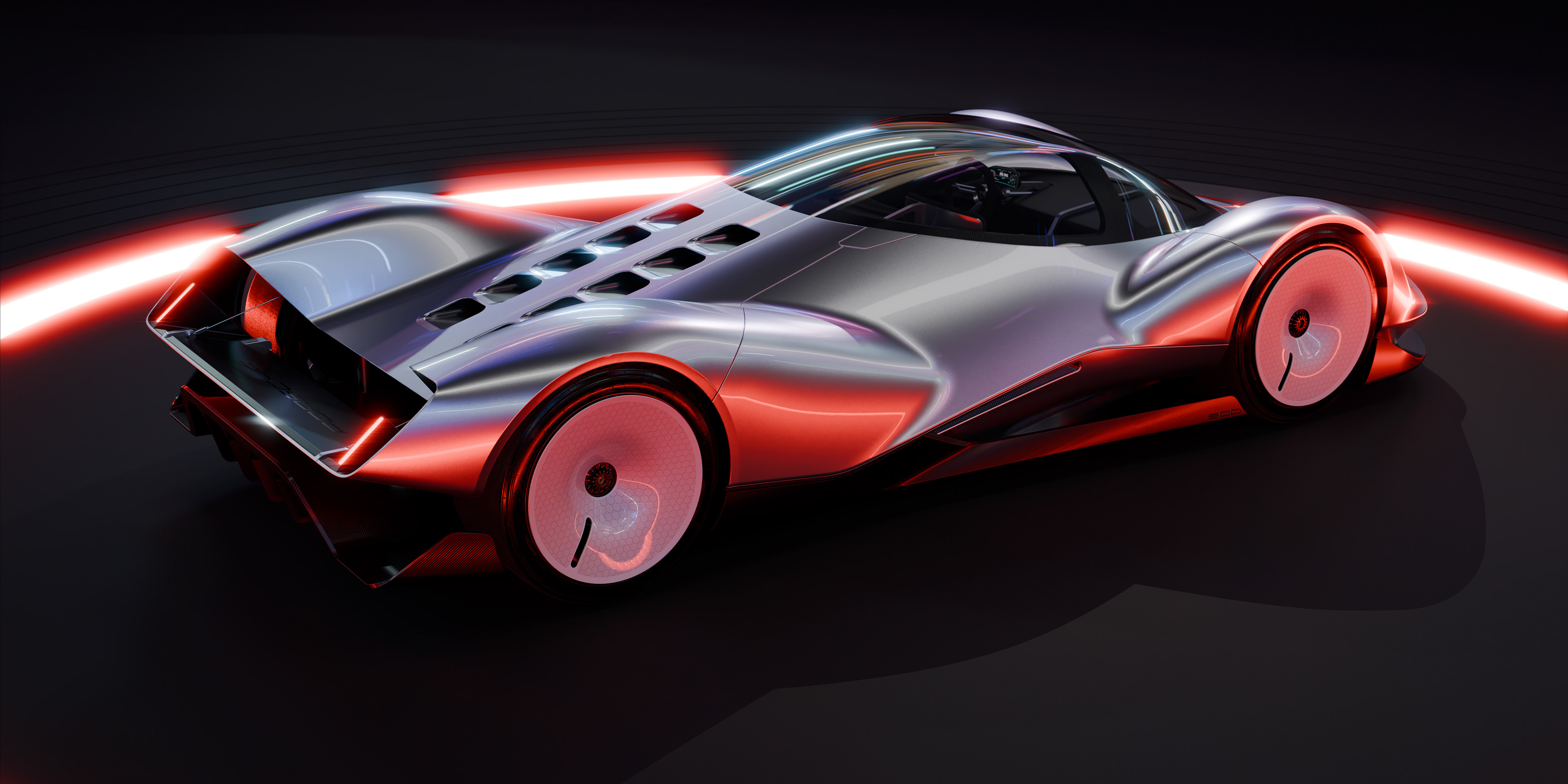 Hypercar concept based on the 70-80s Porsche Le Mans prototypes with some 90s design cues. Extremely low with a two-laid down seat configuration, round steering wheel, and a dog-box gearbox.